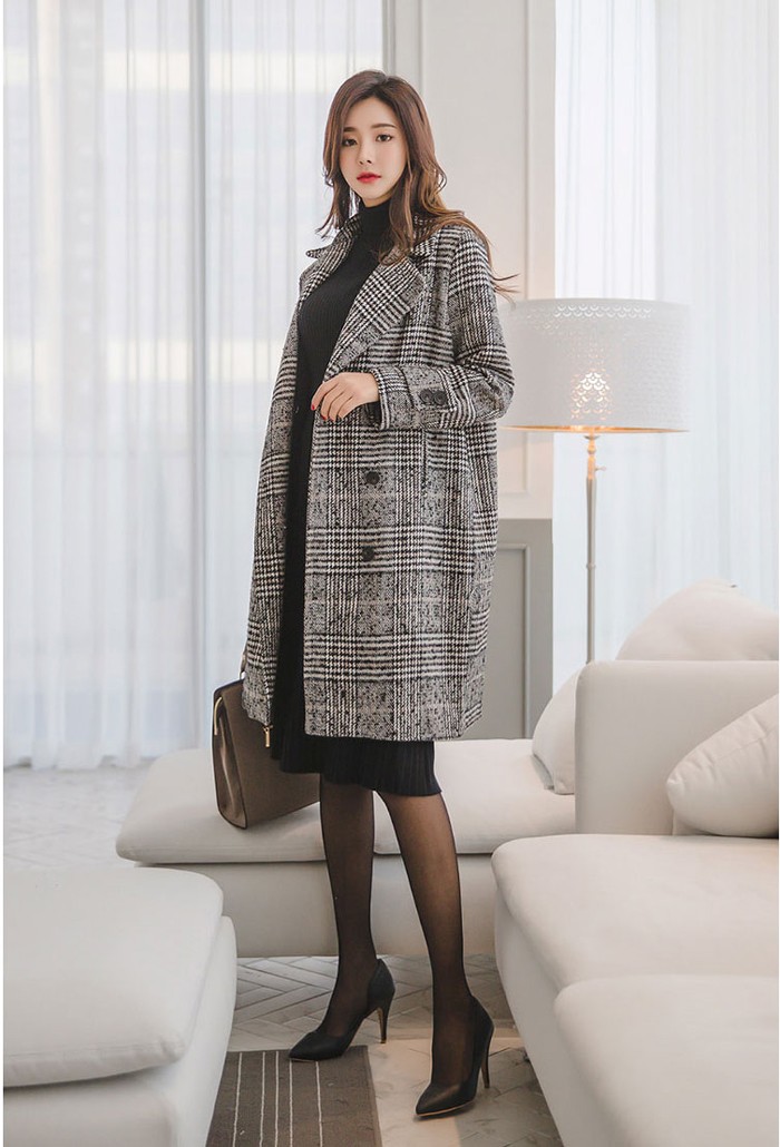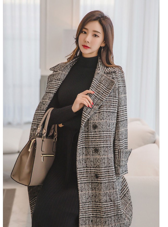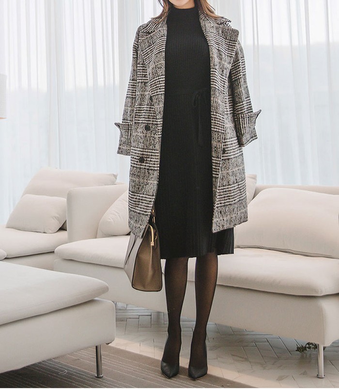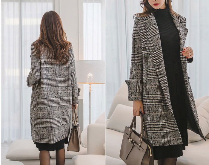 商品名:コート チェスターコート ロング丈 グレンチェック ウール混