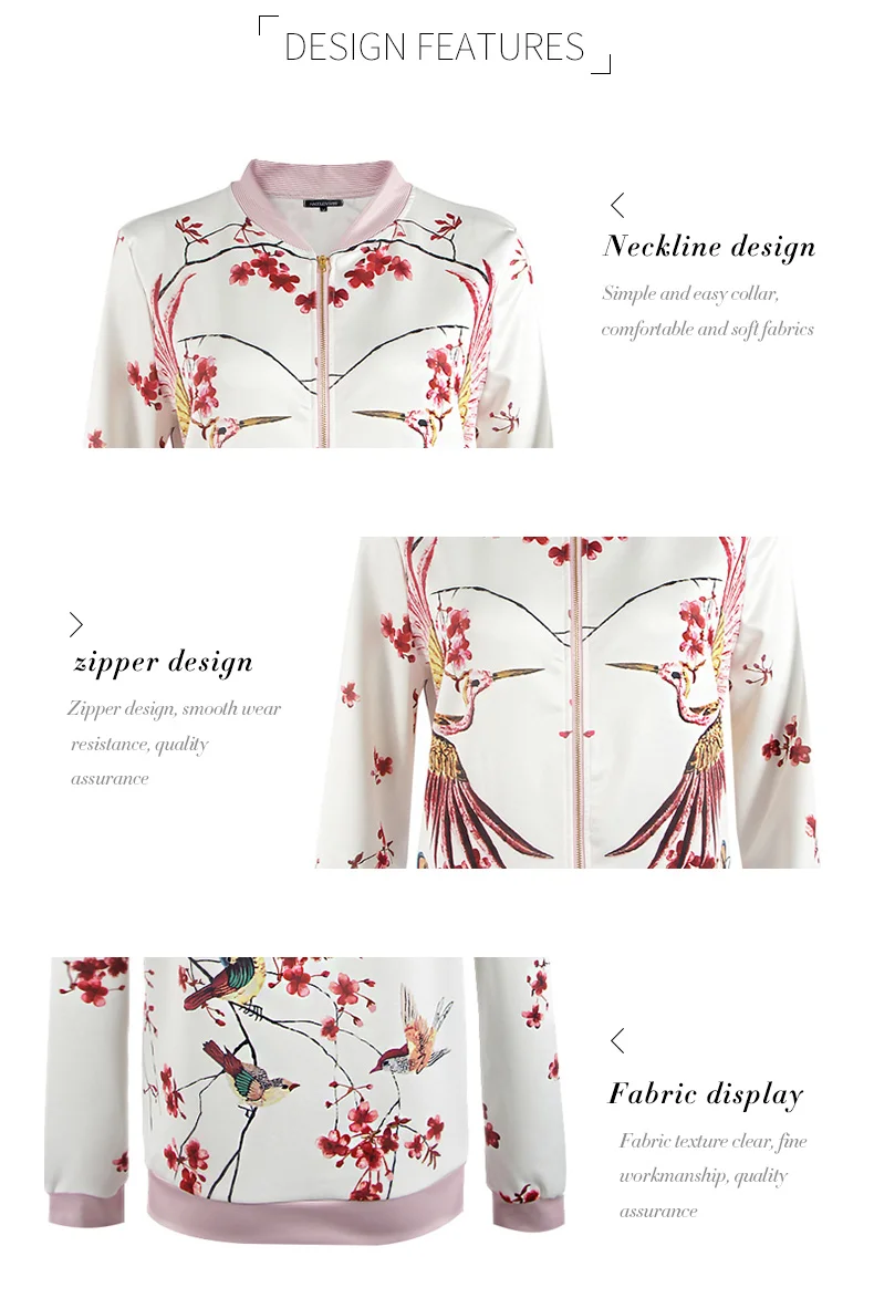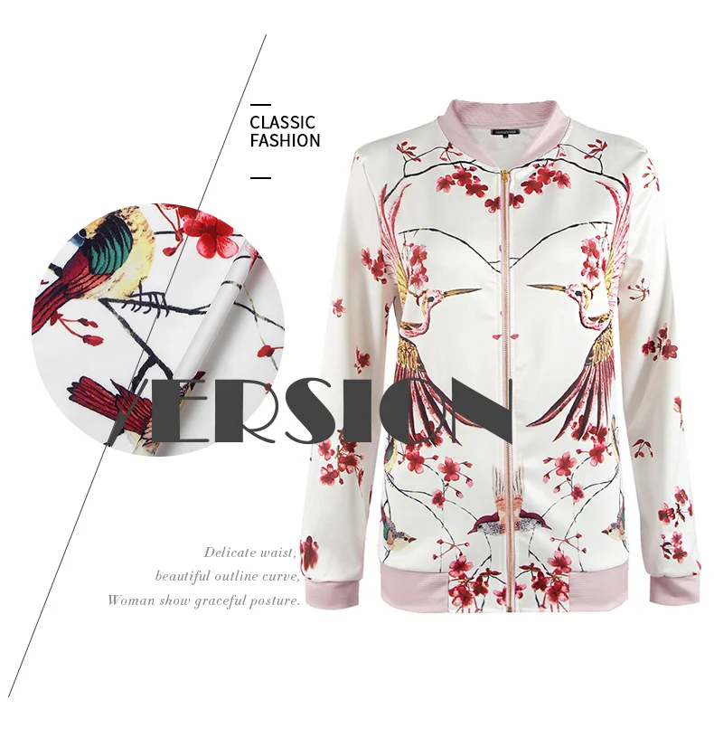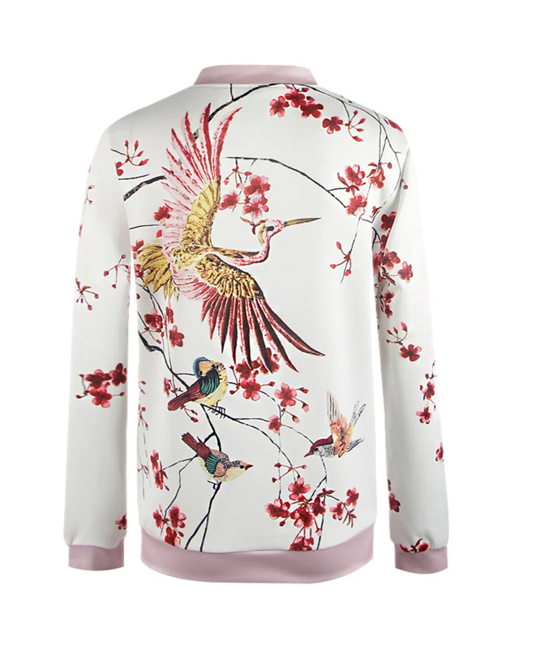 HDY Haoduoyi Phoenix Print White Bomber Jacket Exotic Stand Collar Zipper Pink Jacket Casual Loose Sweet Jacket