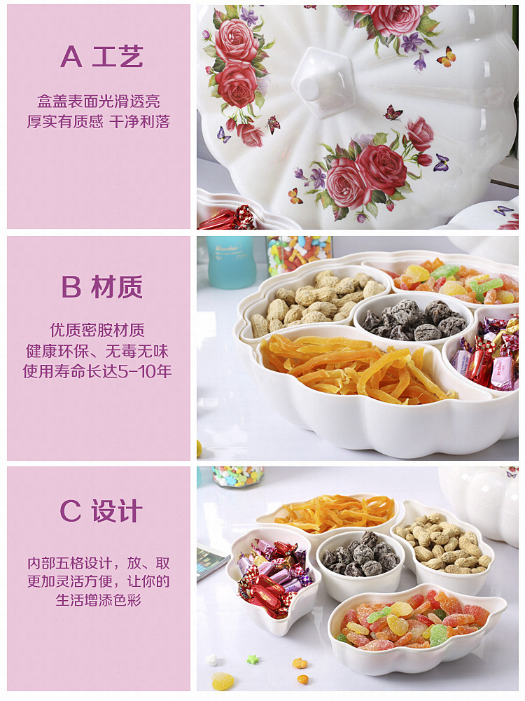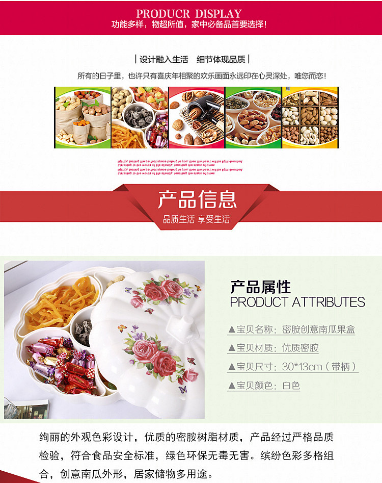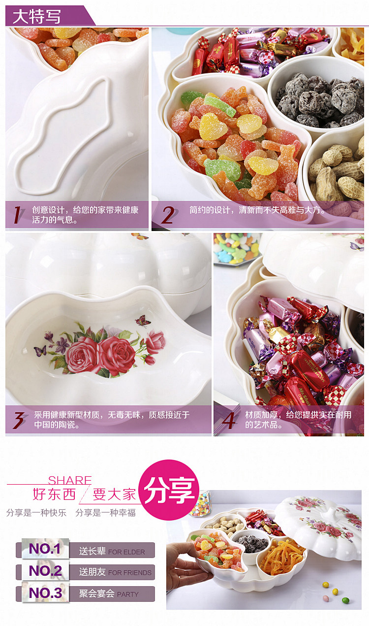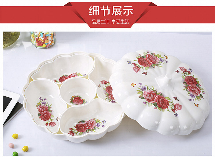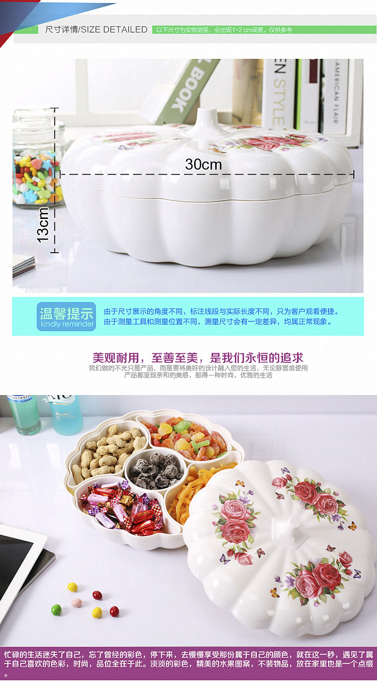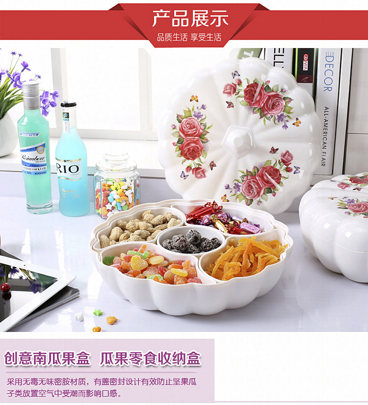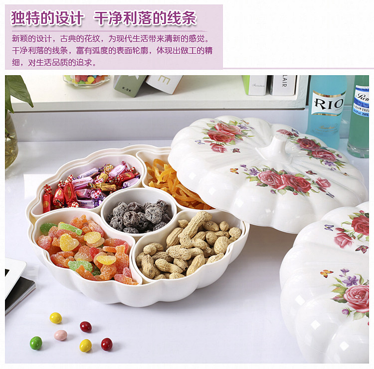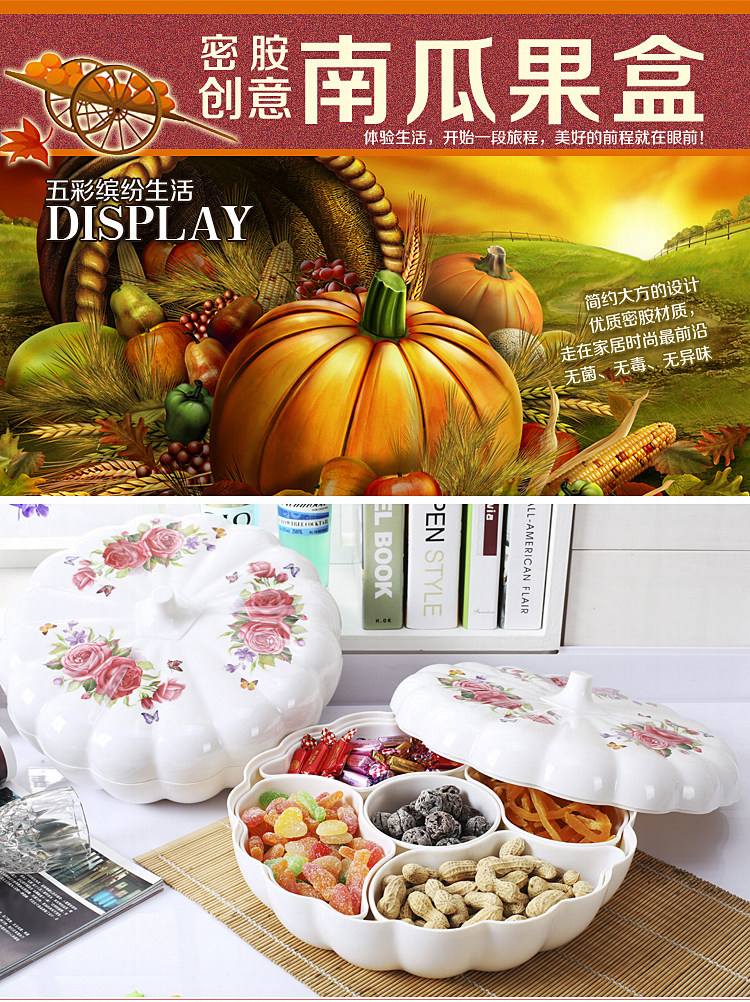 创意南瓜密胺零食干果盘 分格带盖客厅家用新年春节坚果糖果盒