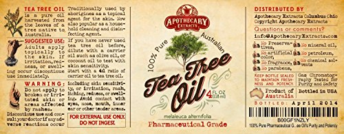 Apothecary Extracts Tea Tree Oil is a pure oil gathered from the leaves of the Melaleuca Alternifolia tree.