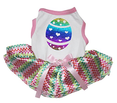 -. Title : Petitebella Puppy Clothes Dog Dress Easter Rainbow Egg White Shirt Chevron Tutu