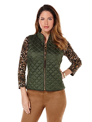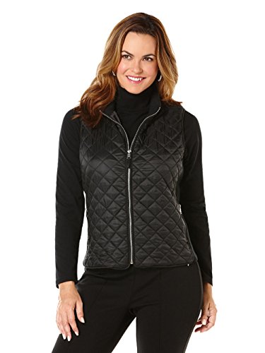 The outdoorsy puffer vest gets a chic update in the Rafaella Misses Quilted Puffer Vest With Sweater Side Panels. This sophisticated women's zipper collar vest features a sleek puffer look with sweater paneling along the sides to keep you warm while still being lightweight as can be. Pair with a turtleneck and jeans for a comfy, trendy look.