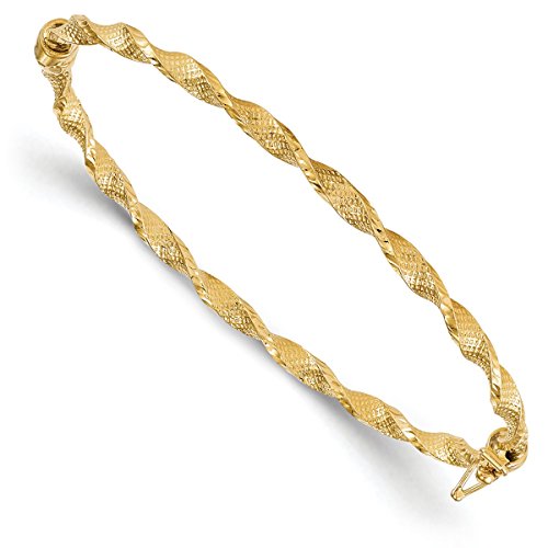 Create a lasting impression with this beautiful bangle bracelet, wrought in polished 14k yellow gold and decorated with a sophisticated twisted and textured design.