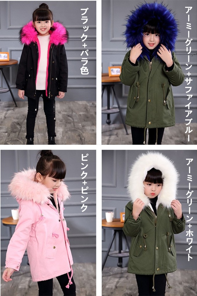 ■カラー(服+ファー):ブラック+バラ色 アーミーグリーン+ホワイト アーミーグリーン+サファイアブルー ピンク+ピンク