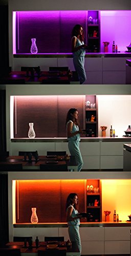 The Philips Hue Lightstrip Plus Dimmable LED Smart Light is the most flexible light source imaginable. Shape the strip in nearly any form and attach it to any solid surface. Take control of your home lighting wirelessly, with a smart device. Set your lights to power on with the morning sun, gently waking you, or to turn on and off as you leave or arrive home. Transform your living room, bedroom, kitchen and other rooms with millions of colors and shades of white light, or to sync to games, music, and movies for enhanced experiences. Install the flexible Lightstrip under bars, bed frames, or cabinets, with included adhesive tape. Trim it to the perfect size with the included cut marks. Connect it to a Hue Bridge (sold separately) to control your lighting. Light the entire home with versatile accessories (sold separately) such as Hue Dimmer Switch, Hue Tap, or Hue Motion Sensor. The Lightstrip works with Amazon Alexa, Apple HomeKit, and Google Assistant for voice control, Nest and Samsung SmartThings for smart home automation, and includes an 80-inch Lightstrip, power adapter, manual, and two-year warranty.Feature