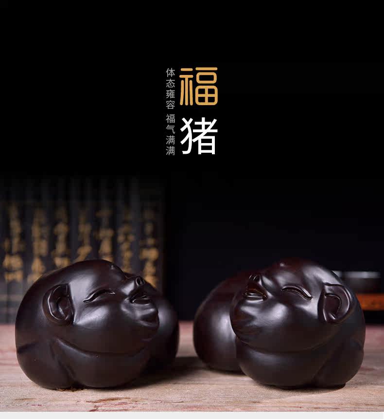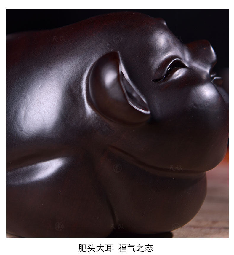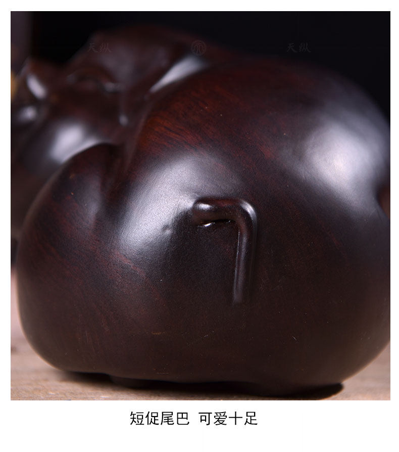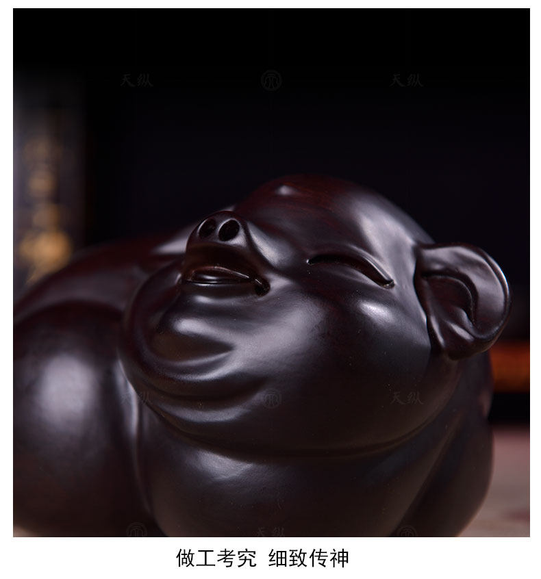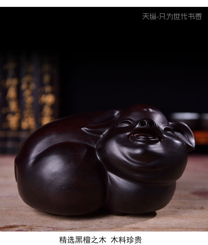 黑檀木雕原木招财猪对猪客厅十二生肖桌面摆件红木实木工艺品礼品