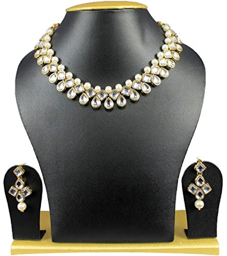 Prime Fast Delivery Ddivaa Elegant Rich Kundan White Pearls Gold Tone Jewelry Necklace Set