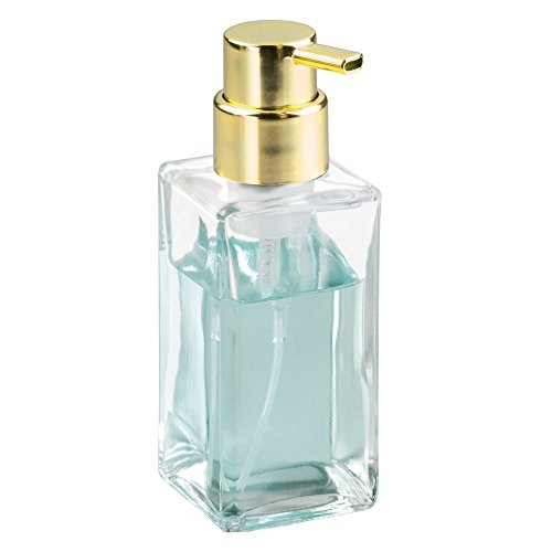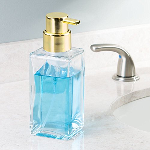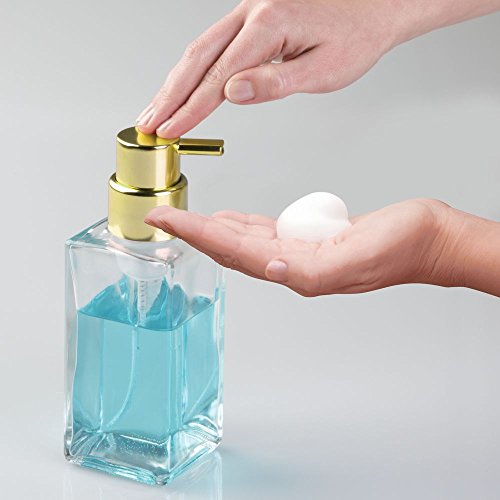 InterDesign Casilla Modern Foaming Glass Soap Dispenser Pump for Kitchen, Bathroom Vanities - Clear/Gold Brass