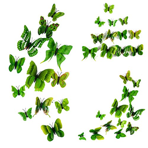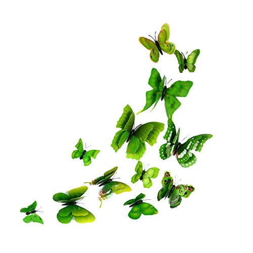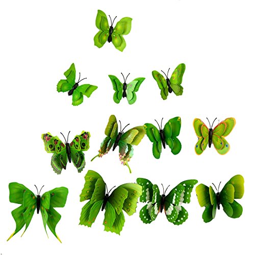 Butterfly Fridge Magnets and Wall Stickers Etop Double Stack Structure Pack of 12 (green)