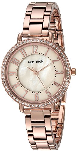 -. Binding : Watch -. Brand : Armitron -. Color : Rose Gold -. Department : womens -. EAN : 0086702603503 -. Feature : Bezel set with 60 clear Swarovski crystals; mineral crystal lens; light tan mother-of-pear dial with rose gold-tone hands and easy to read Arabic numerals; black printed inner minute track / Rose gold-tone adjustable link bracelet; jewelry clasp and extender / Japanese-quartz Movement / Case Diameter: 32mm / Water resistant to 50m (165ft: in general, suitable for short periods of recreational swimming, but not diving or snorkeling -. Label : Armitron -. Manufacturer : Armitron -. Model : 75/5471TMRG -. MPN : 75/5471TMRG -. PackageQuantity : 1 -. PartNumber : 75/5471TMRG -. ProductGroup : Watch -. ProductTypeName : WATCH -. Publisher : Armitron -. Studio : Armitron -. Title : Armitron Women's Quartz Metal and Alloy Dress Watch, Color:Rose Gold-Toned (Model: 75/5471TMRG) -. UPC : 086702603503