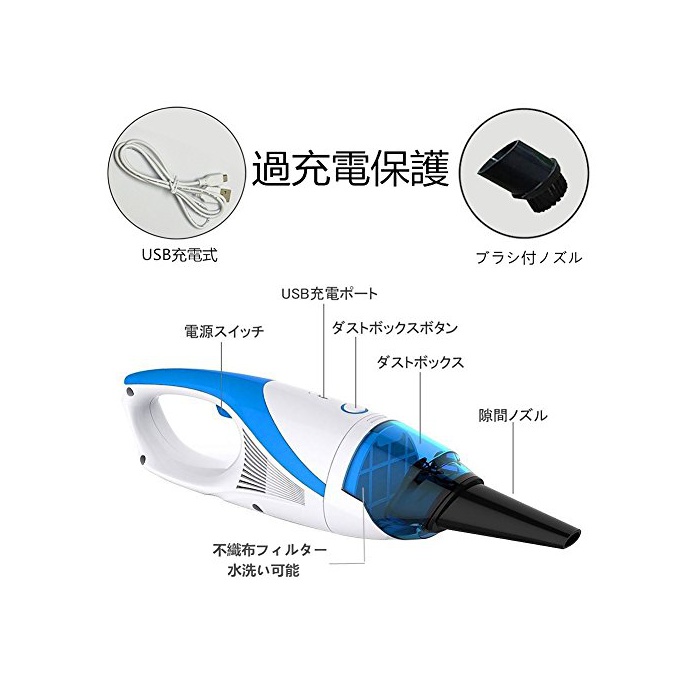 【강력한 흡인력】충전식 청소기는 약1400pa 의 흡역강도가 있고, 차내의 먼지나 작은 돌은 물론,방의 쓰레기로도 강력하게 흡수합니다.차일드 씨트에 넘친 간식에서도 확실히 흡수할 수 있습니다.