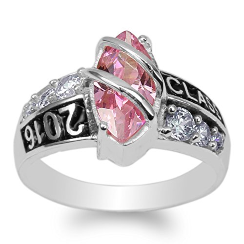 -. Title : JamesJenny 925 Sterling Silver 2016 Graduation School Pink Marquise CZ Ring Size 4-9
