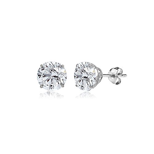 -. Title : 14K White Gold Round-Cut Solitaire Prong-set Stud Earrings for Women or Girls