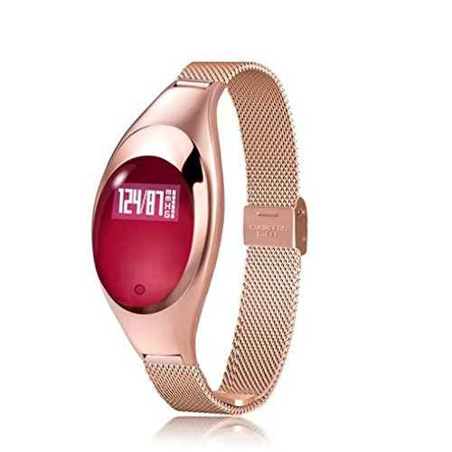 Women Fashion Smart Watch,ZIMINGU 2017 New Smart Bracelet Z18 with Blood Pressure Measure Heart Rate Monitor Pedometer IP67 Waterproof Bluetooth Wristband for Android and IOS (Gold)