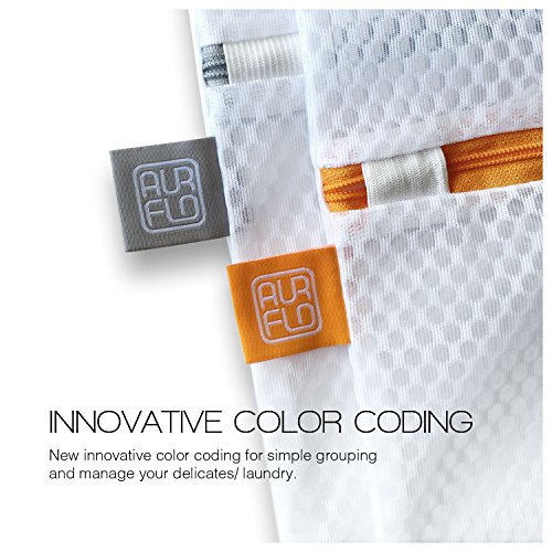 AURFLO Mesh Laundry Bag-Set of 2 Extra Large Heavy Duty Net with Zipper Lock, Color Coding and Hanging Loop-Safe Wash and Organizer for Travel, Lingerie, Gloves, Socks, Yoga Pants, Bra, Jeans, Sweater