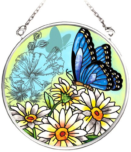 Amia 5684 Hand Painted Glass Suncatcher with Butterfly Design, 3-1/2-Inch Circle