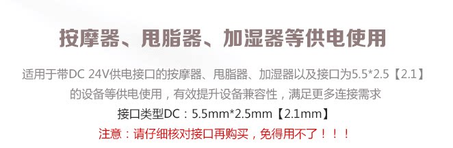 Default plug: OD 5.5 × diameter 2.5 For other specifications of the plug, please contact customer service