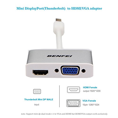 Benfei Mini DisplayPort (Thunderbolt) to HDMI/VGA Adapter with HDMI Audio, Mini DP(Display Port) Male to HDMI VGA Female Converter for Apple iMac, MacBook Pro L51G Surface Pro Dock