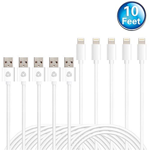 Armii® 5 Pack 10 Feet / 3 Meters Lightning to USB Cable Extra Long Apple Charger for iPhone iPad iPod [ Heavy Duty ]