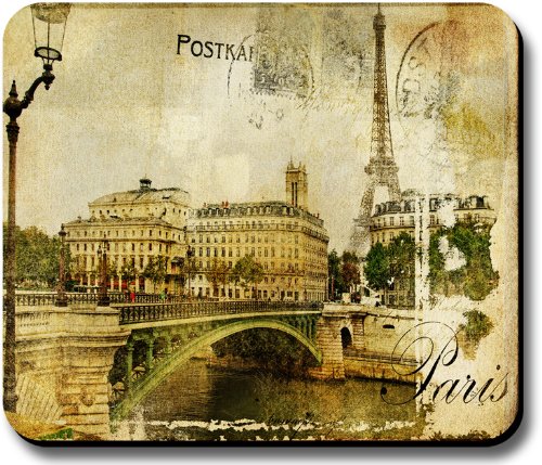 Decorative Mouse Pad Art Print Vintage Postcard Paris Eiffel Tower Add a personal touch touch to any computer room. Non-slip rubber backing.  Cloth surface works with any type of mouse, including optical or ball type. measures 9 1/4 inches x 7 3/4 inches x 1/4 inches thick.