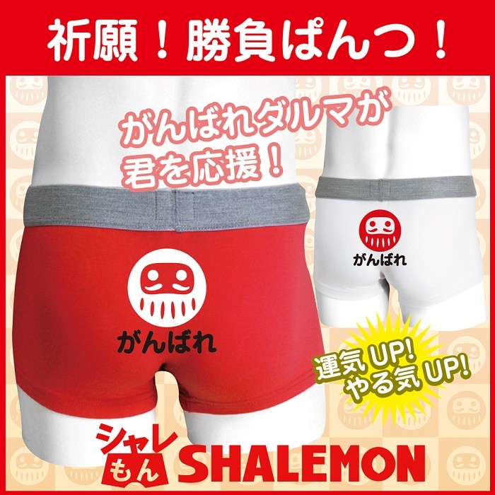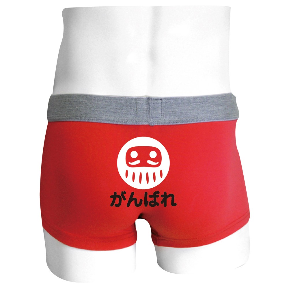 がんばれダルマが資格試験や受験試験向けてがんばる君を応援!これを履いて一発合格(たぶん)まちがいなし!(笑)赤と白から選べる2color!履き心地は抜群!お揃いでTシャツもあるよ♪プレゼントや贈り物にボクサーパンツいかがですか?