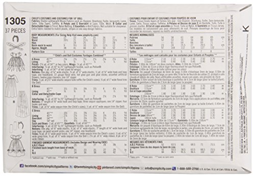 SIMPLICITY US1305A Child's and Doll's Costumes Sewing Template