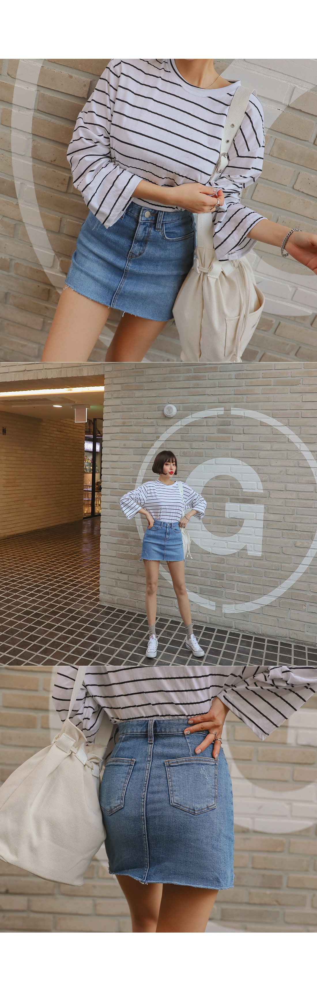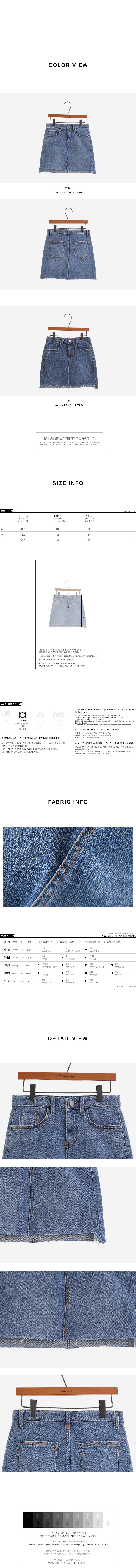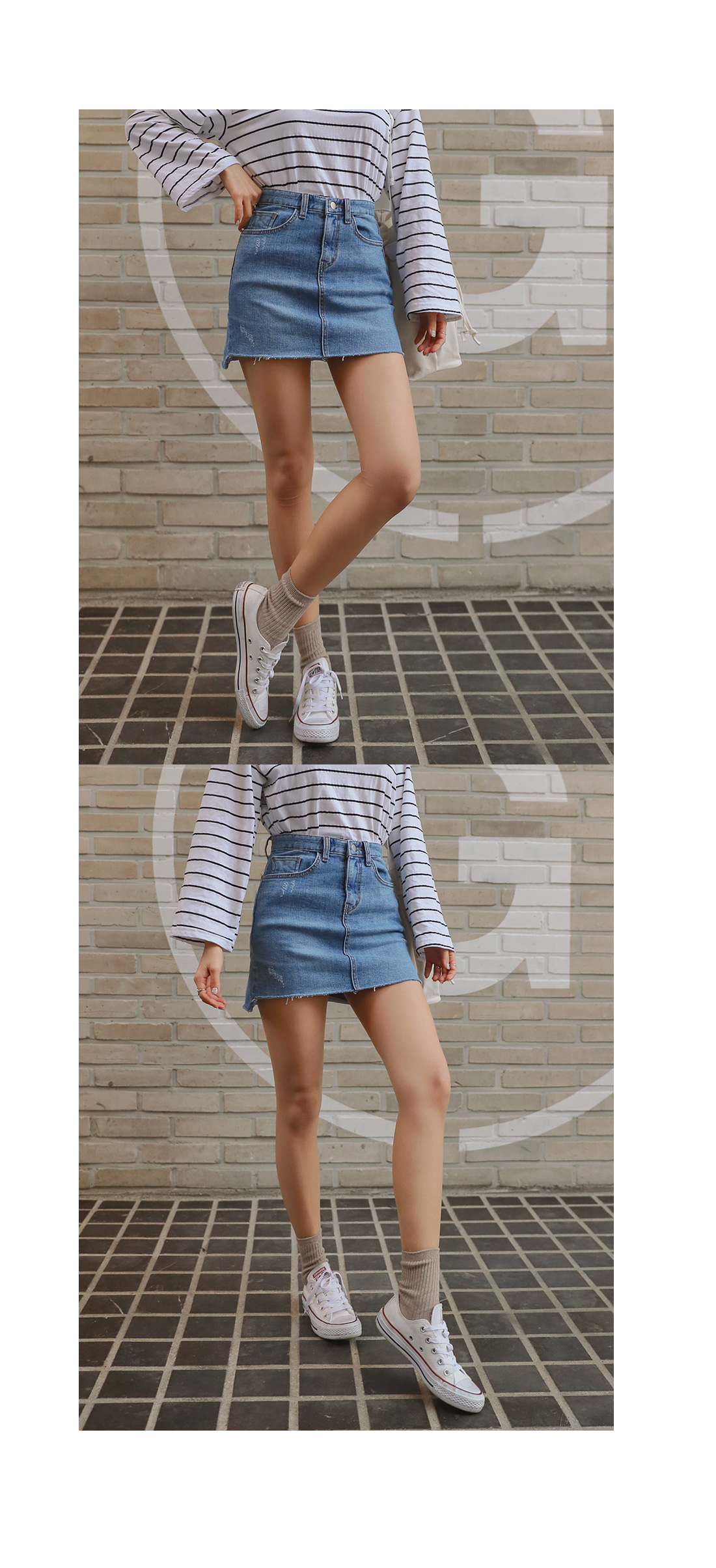 MD COMMENT 밑단 언발 디자인으로 트렌디한 매력을 더해 준데님 스커트를 소개할게요!은은한 워싱과 데미지 디테일로 빈티지한 매력도느껴볼 수 있는 데님 스커트예요.허벅지 중반까지 오는 미니한 기장감으로 제작되어레그 라인이 길어보이는 효과를 가져다주구요.탄탄한 데님 소재로 두고두고 활용하기 좋구요.신축성이 좋아 편안한 착용감을 느껴볼 수 있으며바디에 핏되는 슬림한 핏감으로 바디 라인을 한층 더 날씬하게 연출해줘요.프론트 지퍼와 단추 버튼으로 손쉽게 탈,착용을 도와드리며양 사이드와 힙 라인에 포켓으로 실용성도 챙겨주었어요.다양한 룩에 매치하기 좋은 연청, 진청 2컬러로 구성되었으며사계절 즐기기 좋은 아이템으로하나쯤 소장하신다면 자주 손이 가게 될 아이템으로 추천해요!COLOR/SIZE 연청,진청S,M,LMODEL FITTING 연청/S