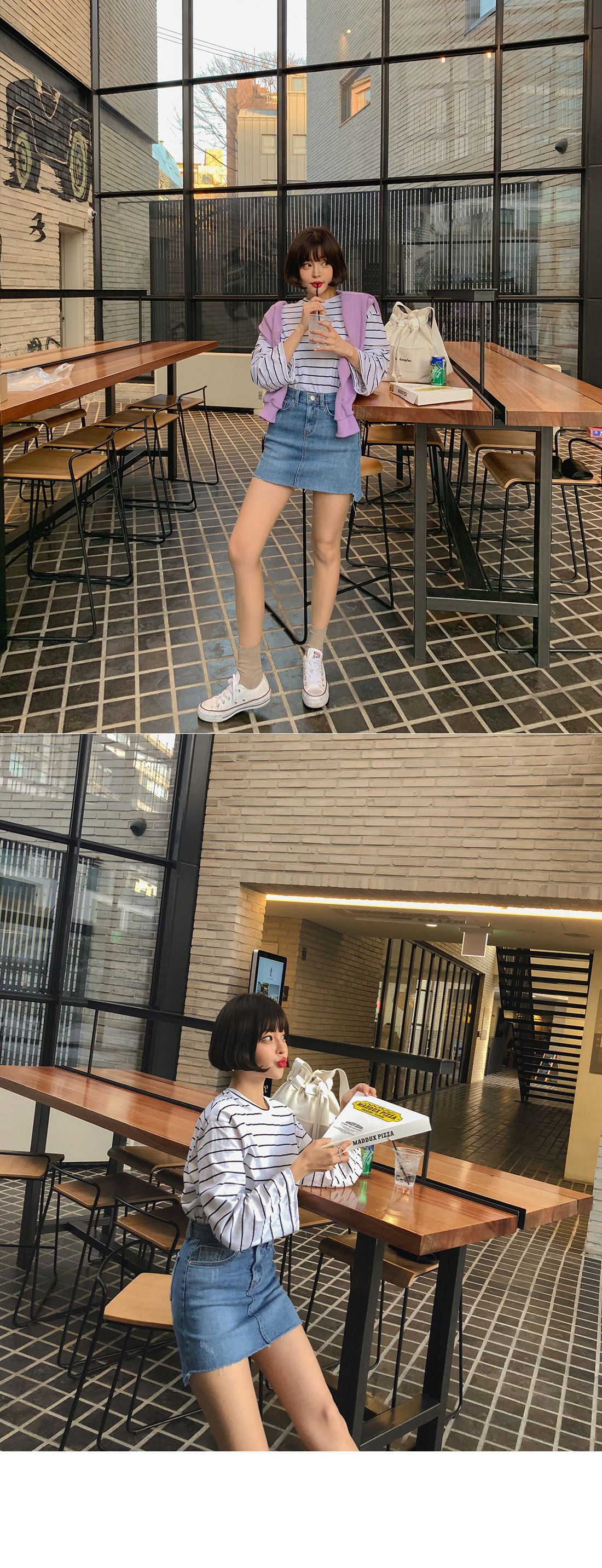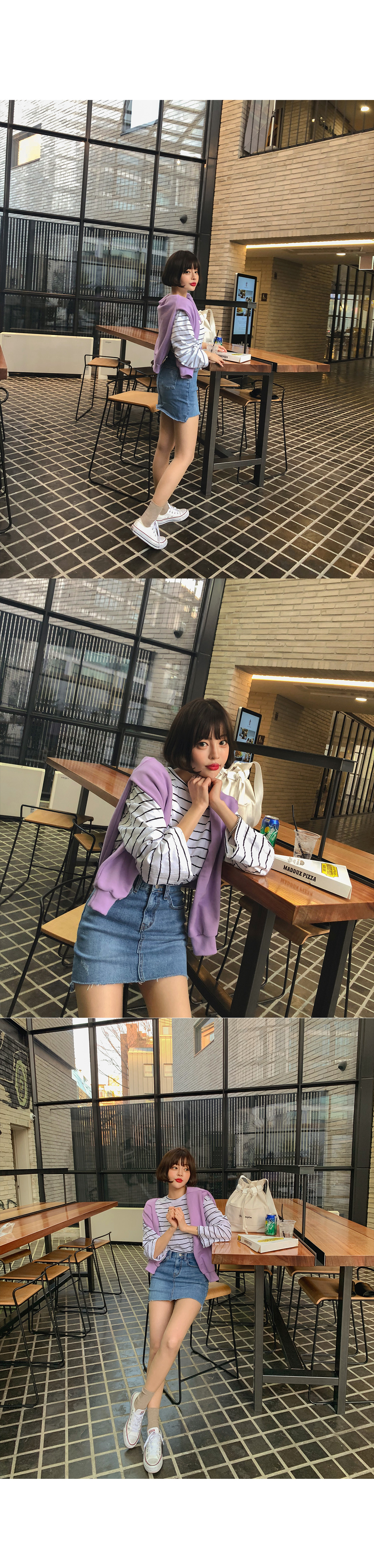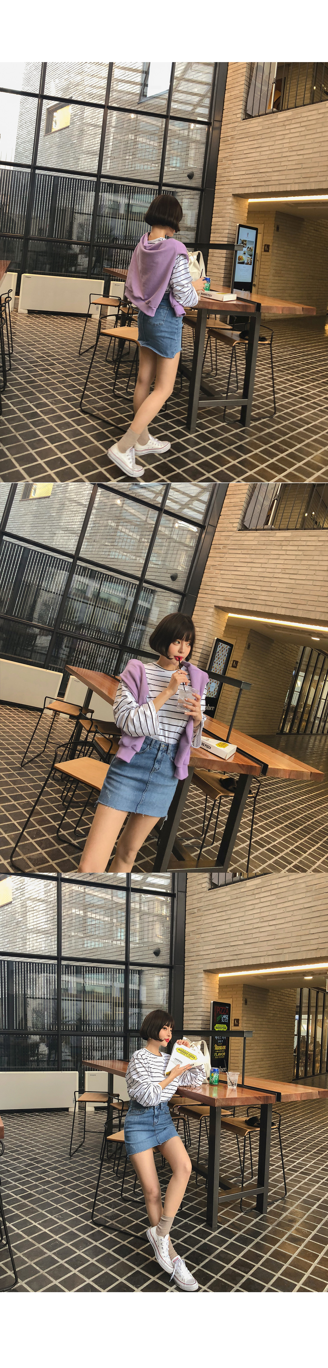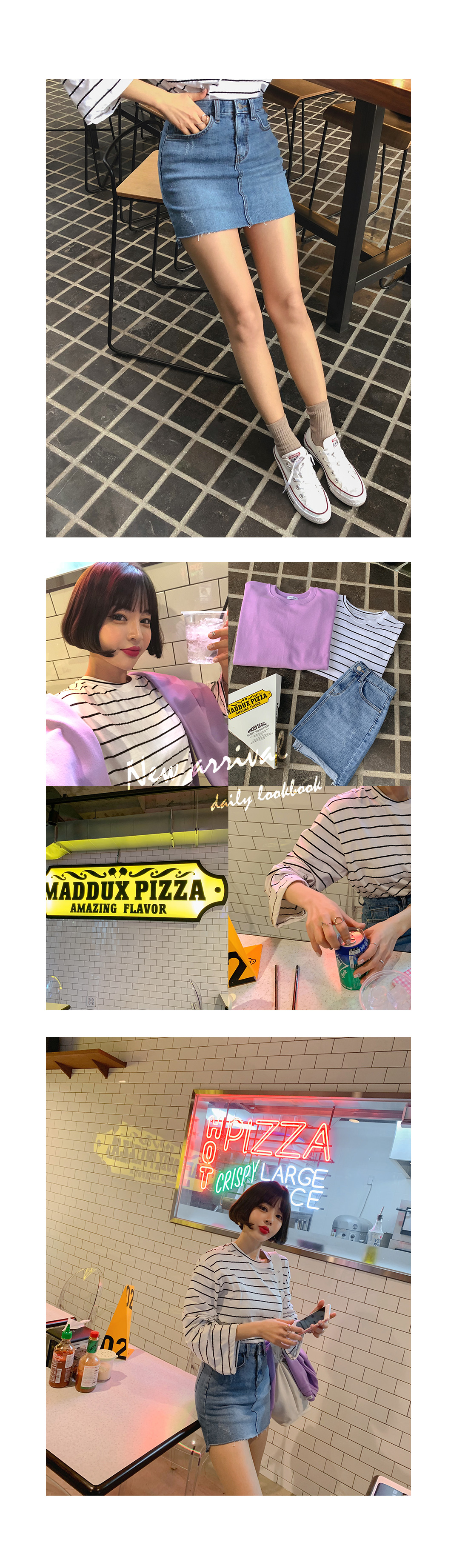 MD COMMENT 밑단 언발 디자인으로 트렌디한 매력을 더해 준데님 스커트를 소개할게요!은은한 워싱과 데미지 디테일로 빈티지한 매력도느껴볼 수 있는 데님 스커트예요.허벅지 중반까지 오는 미니한 기장감으로 제작되어레그 라인이 길어보이는 효과를 가져다주구요.탄탄한 데님 소재로 두고두고 활용하기 좋구요.신축성이 좋아 편안한 착용감을 느껴볼 수 있으며바디에 핏되는 슬림한 핏감으로 바디 라인을 한층 더 날씬하게 연출해줘요.프론트 지퍼와 단추 버튼으로 손쉽게 탈,착용을 도와드리며양 사이드와 힙 라인에 포켓으로 실용성도 챙겨주었어요.다양한 룩에 매치하기 좋은 연청, 진청 2컬러로 구성되었으며사계절 즐기기 좋은 아이템으로하나쯤 소장하신다면 자주 손이 가게 될 아이템으로 추천해요!COLOR/SIZE 연청,진청S,M,LMODEL FITTING 연청/S
