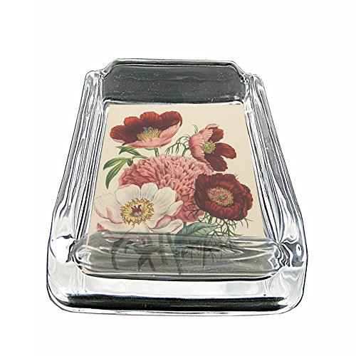 -. Title : Perfection In Style Glass Square Ashtray Vintage Flowers Design 008