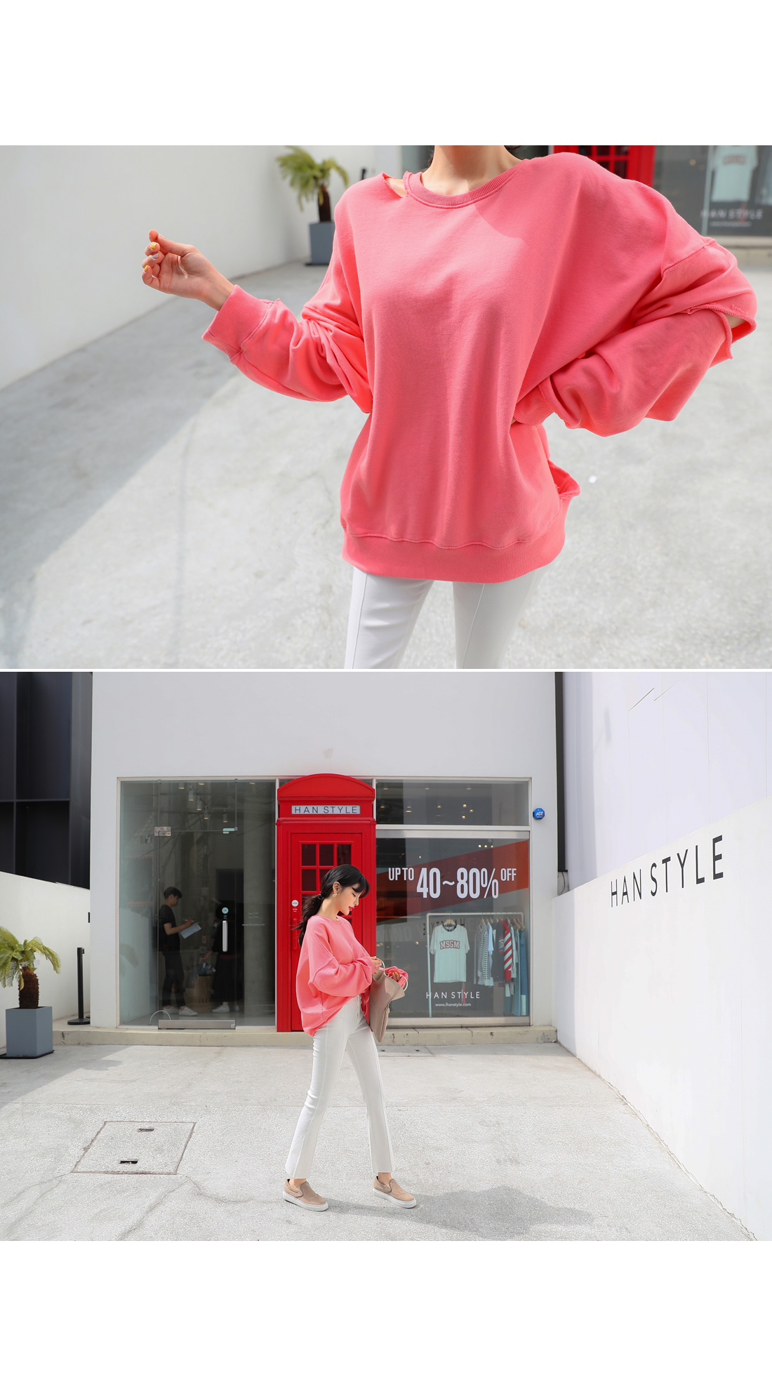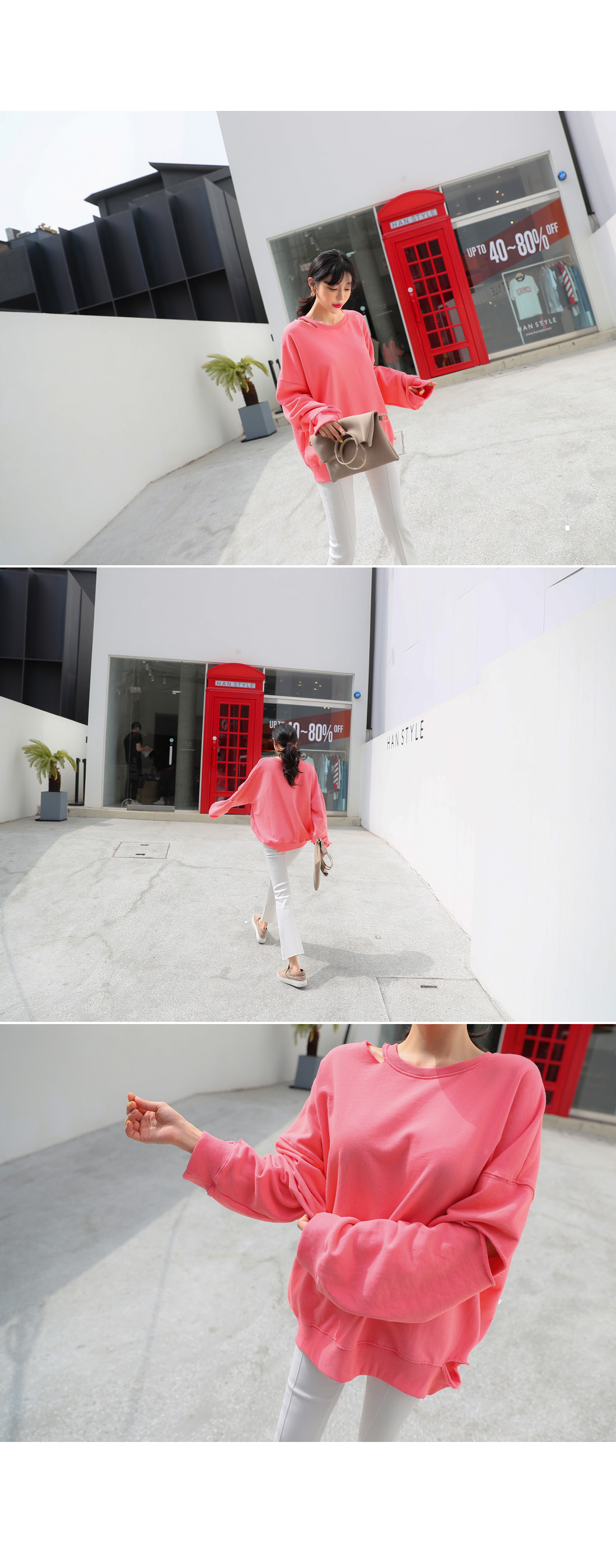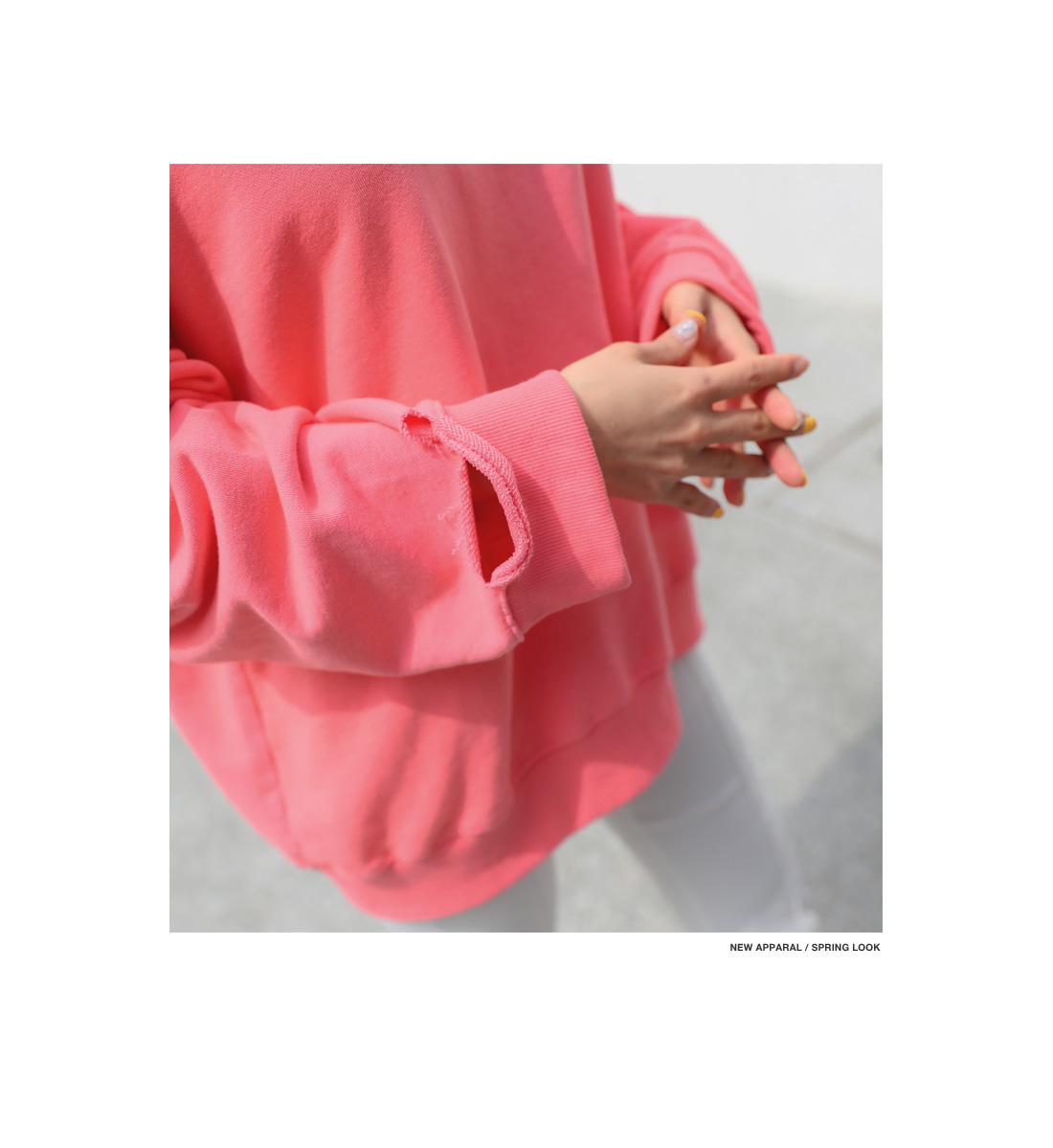 루즈한 핏이 매력적인 컷팅 맨투맨을 소개합니다.루즈한 핏에 드롭 소매 디자인으로 여리여리하게 연출하기 좋으며컷팅 디테일이 포인트로 들어가빈티지한 무드를 더한 맨투맨 아이템이랍니다.신축성 좋은 소재로 편안한 착용감을 자랑하며상큼한 컬러들로 구성되어 포인트로 입기 좋아요.스커트와 함께 매치하여 걸리쉬한 무드로 연출하거나팬츠와 함께 캐주얼하고 내추럴한 무드로 스타일링해도예쁘게 잘 어울려 활용도가 높답니다.여유있는 핏으로 편하고 가볍게 입기 좋으며컬러는 옐로우, 핑크 2 가지로 구성되었어요.