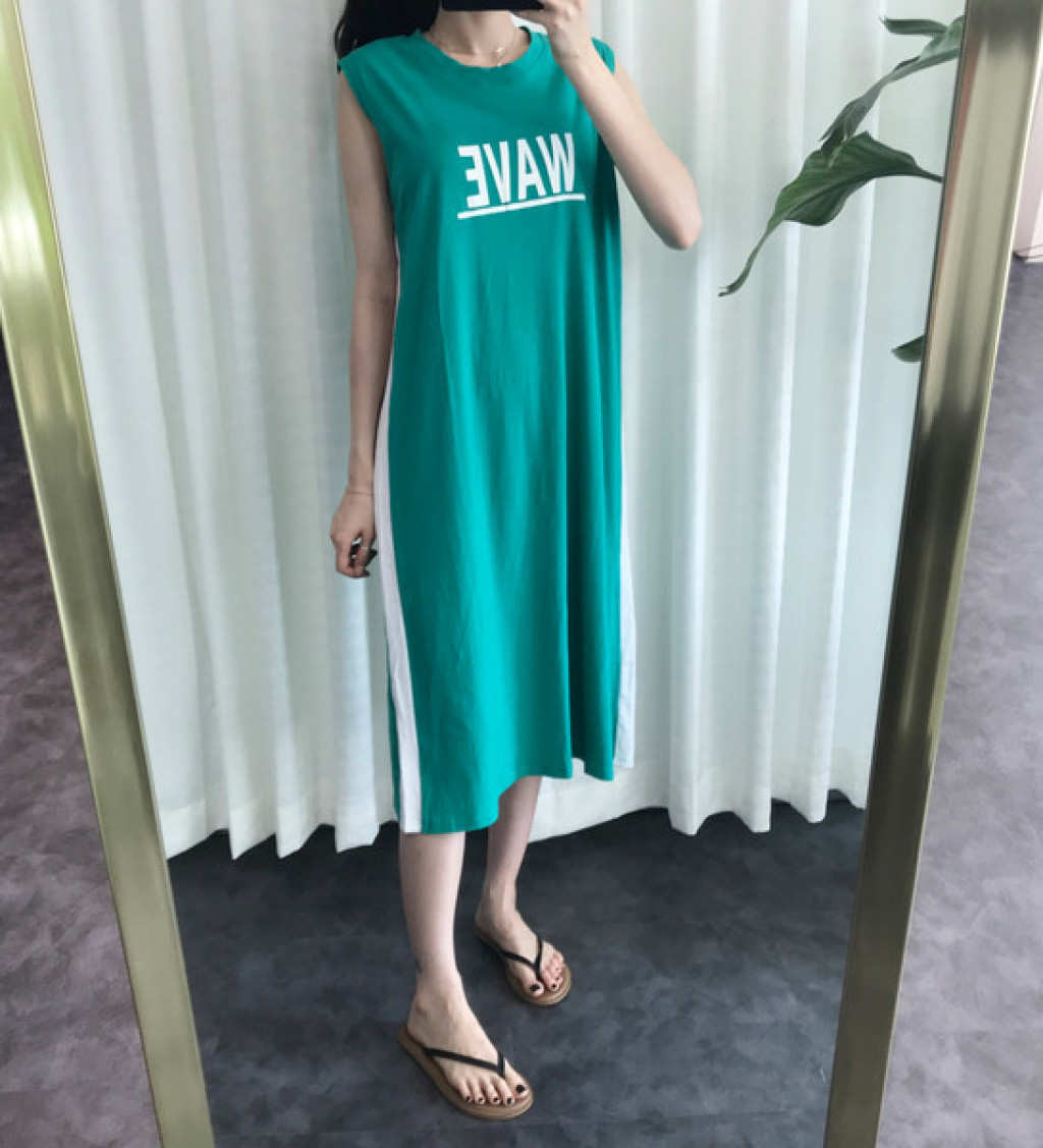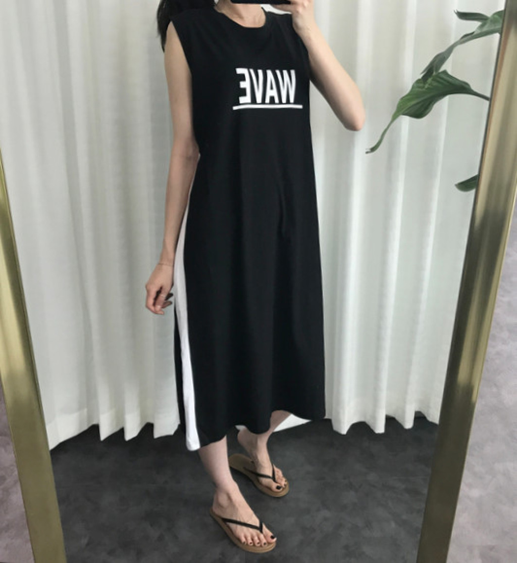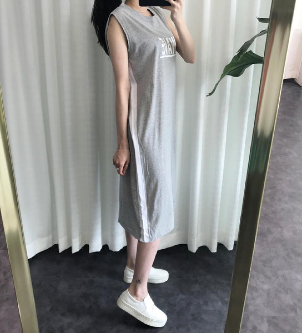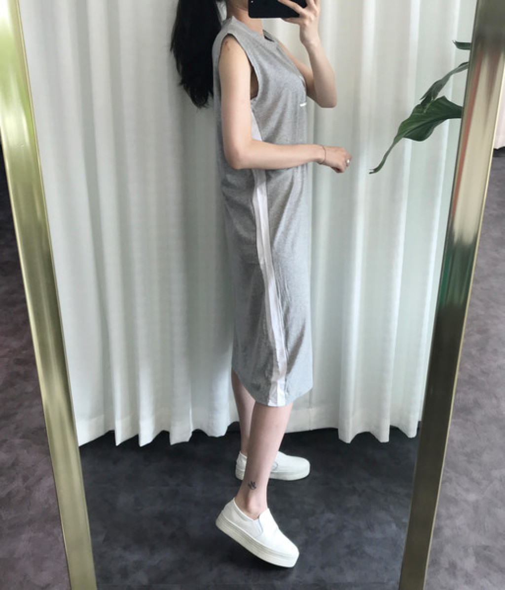 원피스 옆면에 라인 포인트가 들어가 있고