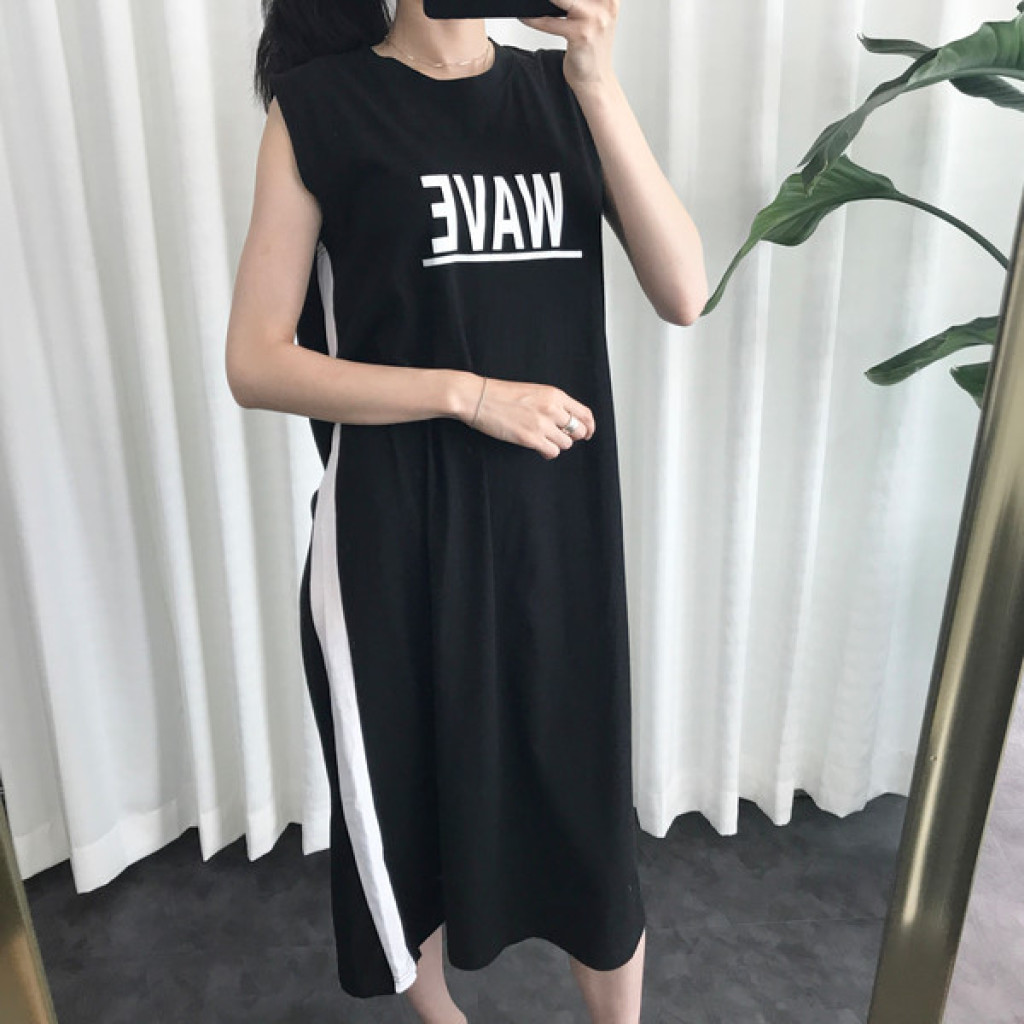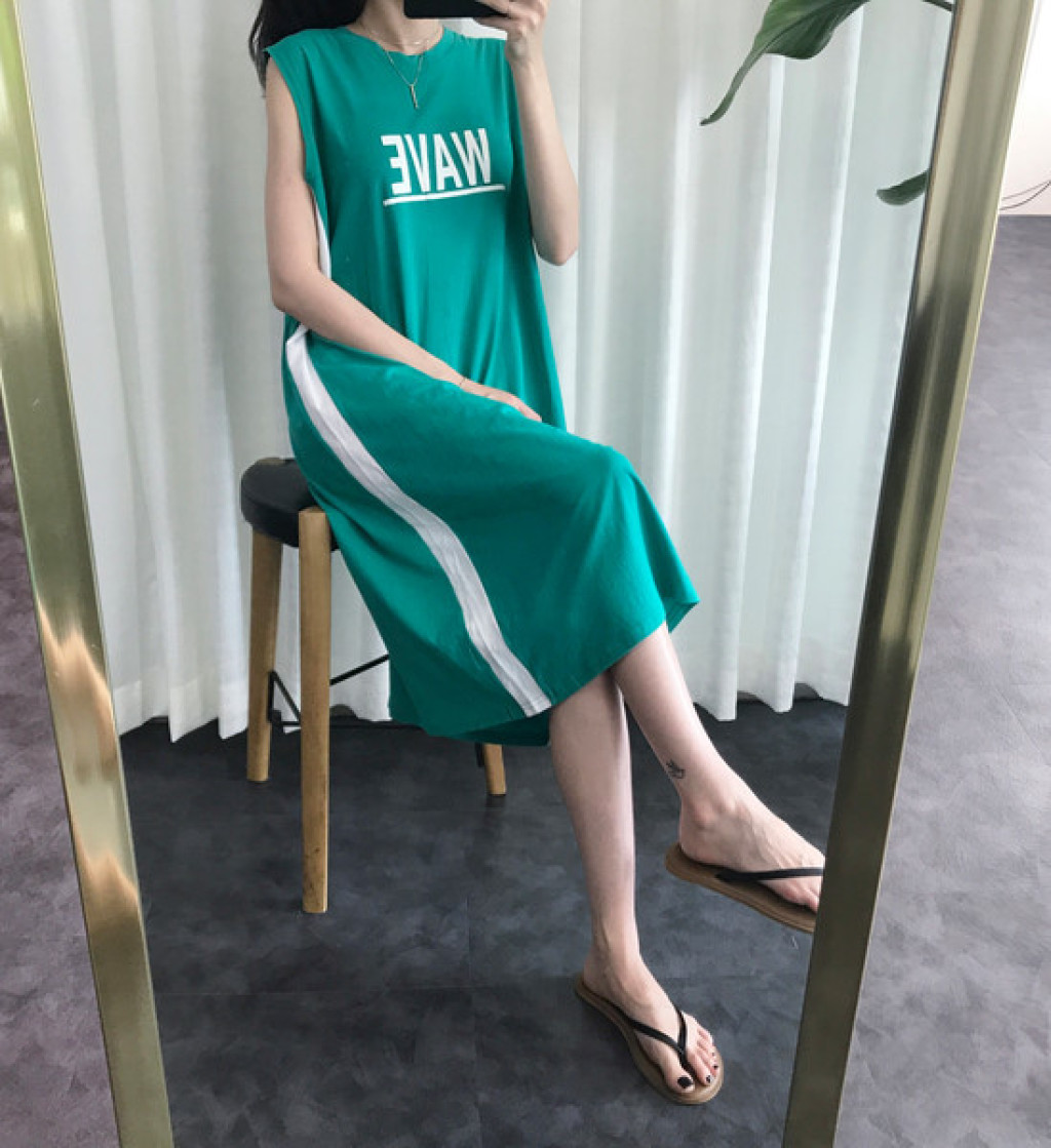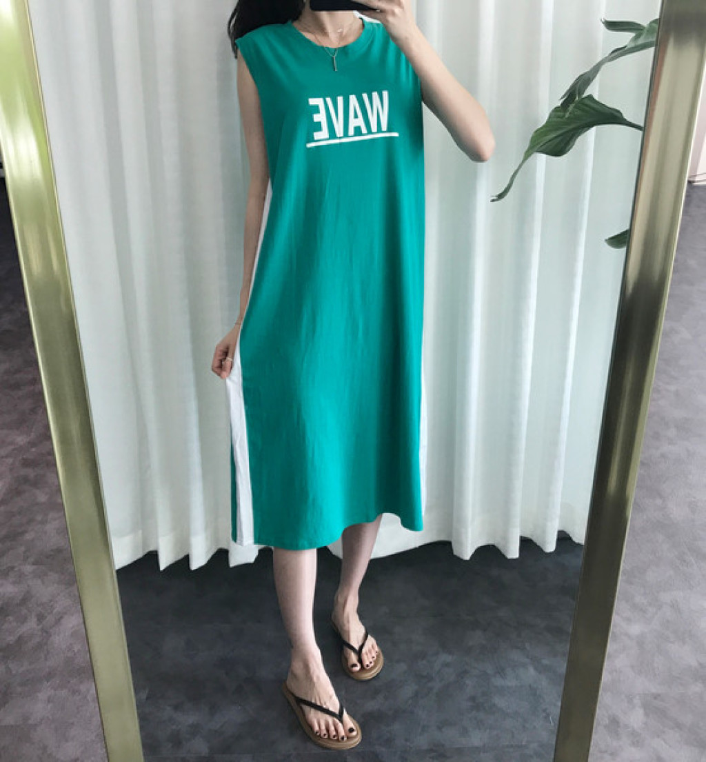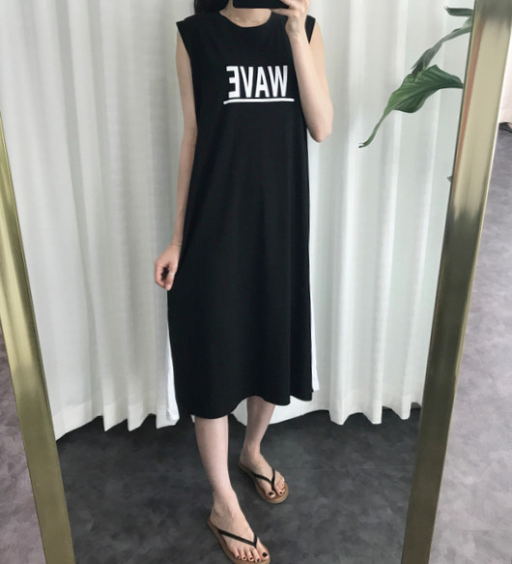 원피스 옆면에 라인 포인트가 들어가 있고