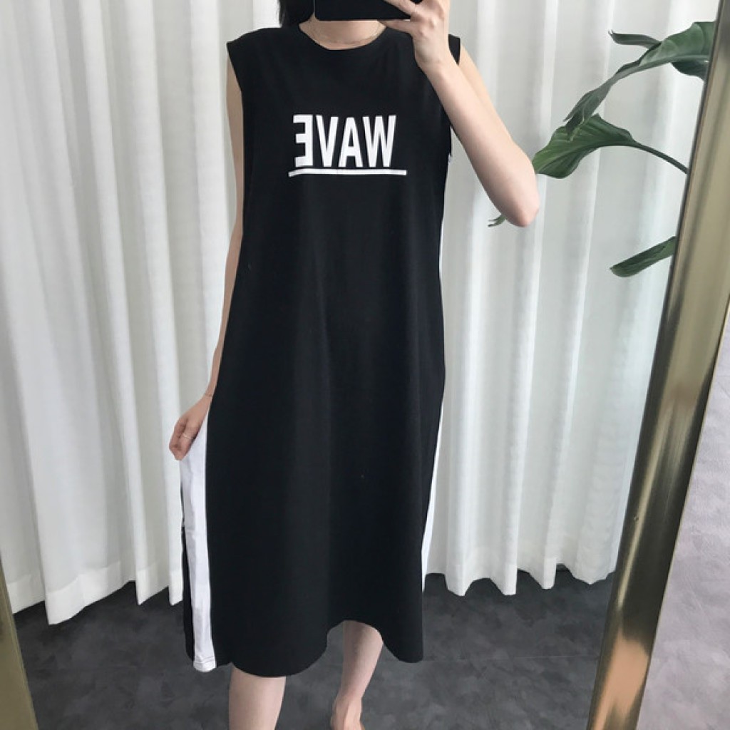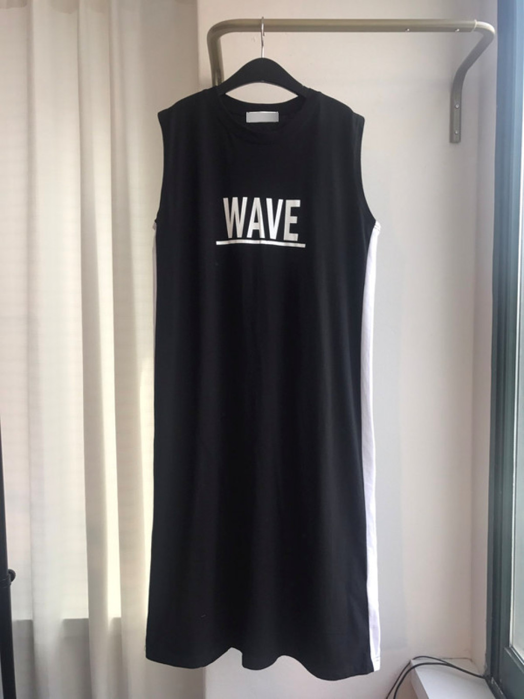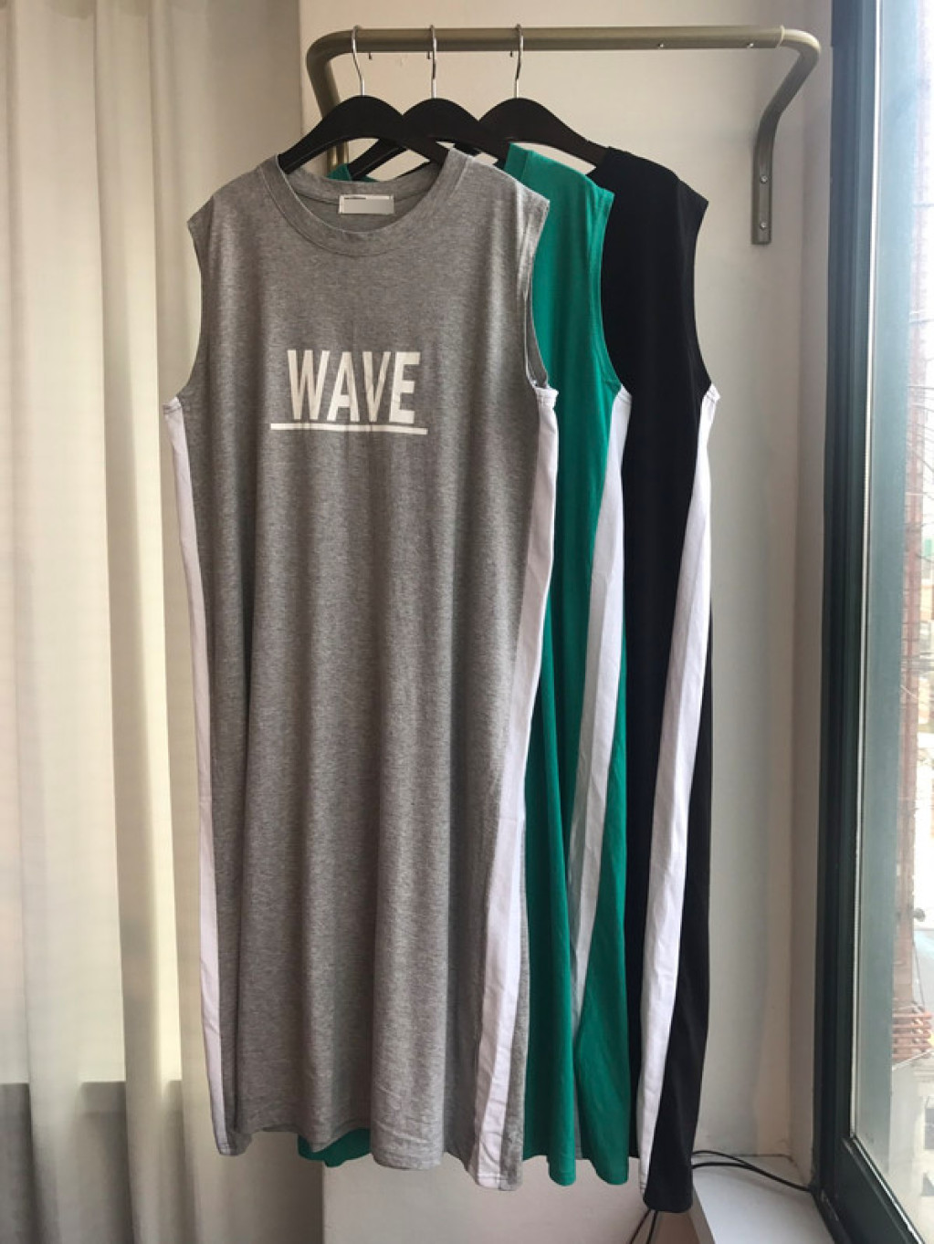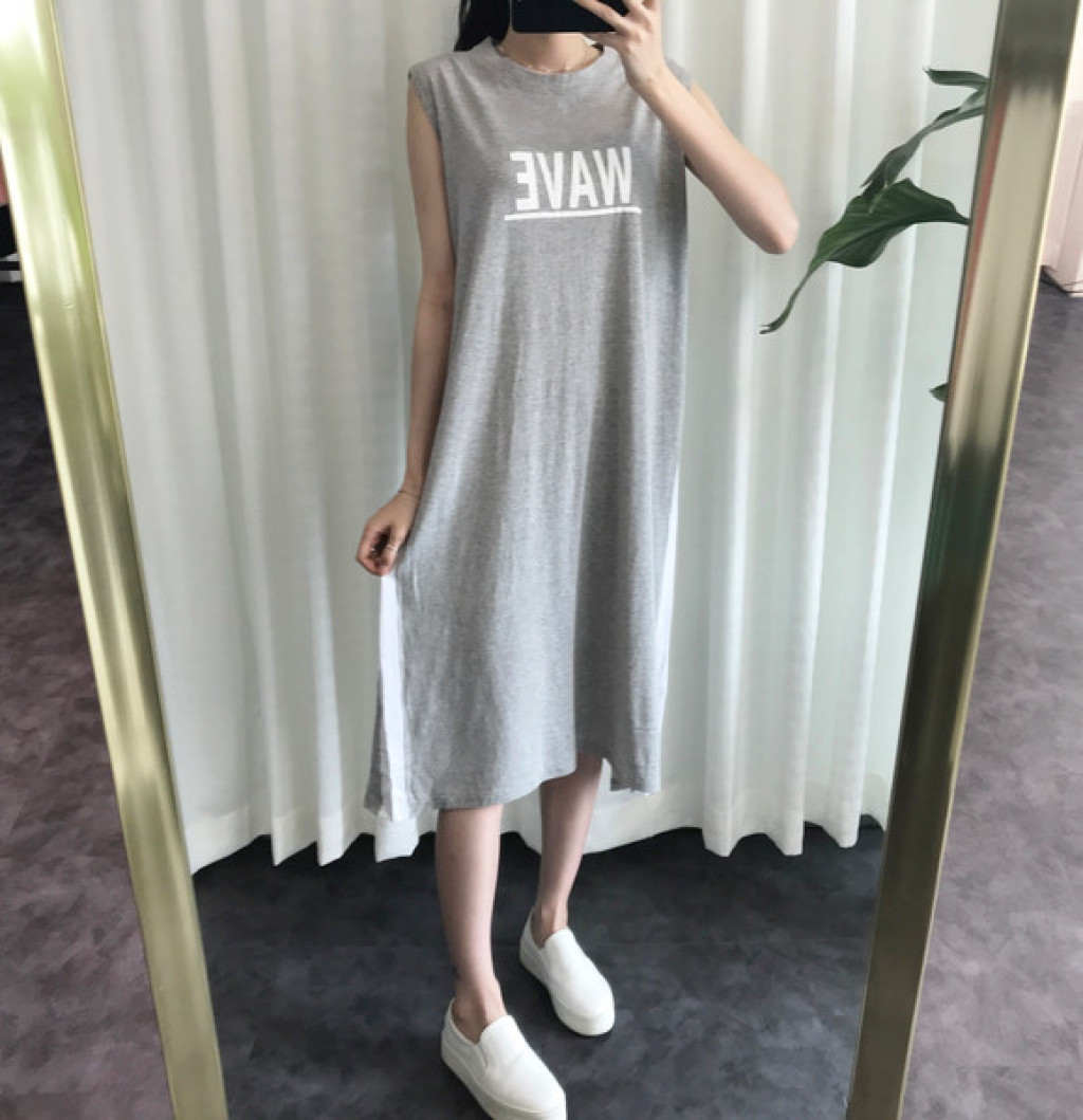 원피스 옆면에 라인 포인트가 들어가 있고