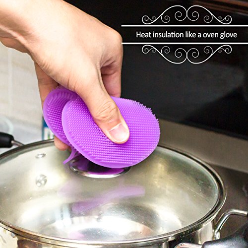 - Multiple functions: It's great gift for scrubbing vegetables, pot, pan, hot insulation pad on dinning table, cleaning brush to remove lint and hair from clothes and furniture and a facial scrubber in the bathroom .