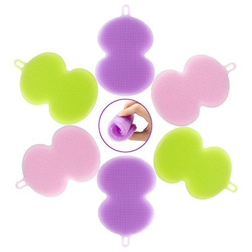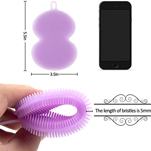 - The double-sided silicone scrubbers are flexible and sturdy to scrub plates, glasses, silverware ,ceramic pots and pans without scratching surface, even clean the small corners and small gaps.