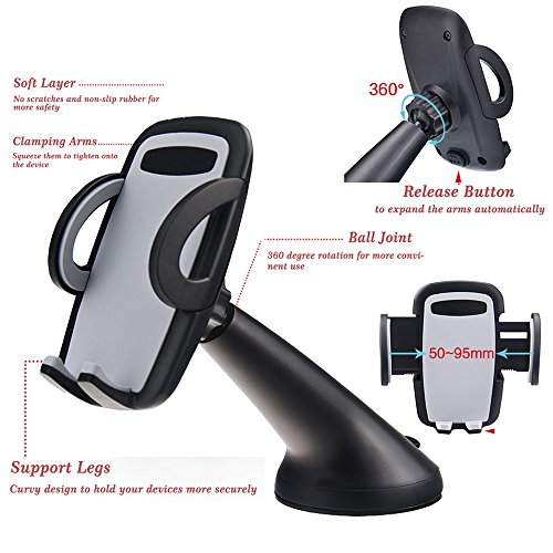 More Stable and Convenient: Hit the release button on the back to expand the arm automatically and squeeze the arms together to tighten onto the device. Totally single hand operation.Push suction cup firmly against windshield and press the lever to lock. Hold your phone in place more definitely. No longer worry about the devices slipped off the windshield.