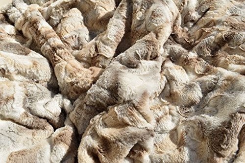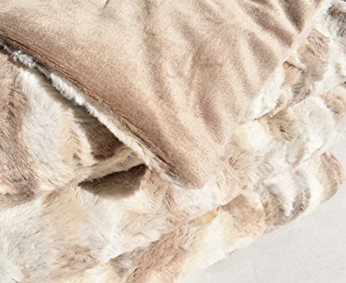 Marlo Lorenz Signature Russian Lynx Faux Fur Throw Plush Quilted Blanket Ivory Beige Tan Gray Gift Box