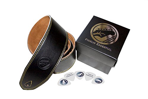 -. Title : Fidelis Essential Leather Guitar Strap (Black) + 5 Guitar Picks (Med) | Adjustable Length, Suede Backing | Acoustic, Electric and Bass Guitarists | Soft, Light, Comfortable | Kids, Adults