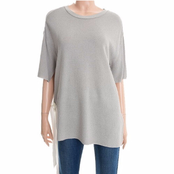 소매와 한쪽 사이드에 슬릿 디자인과 언발란스한 디테일이 페미닌한 풀오버입니다
