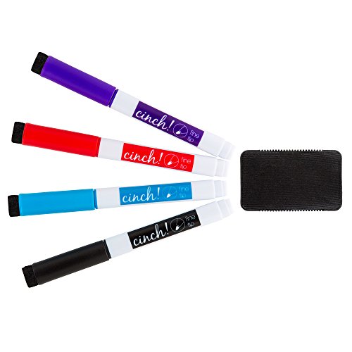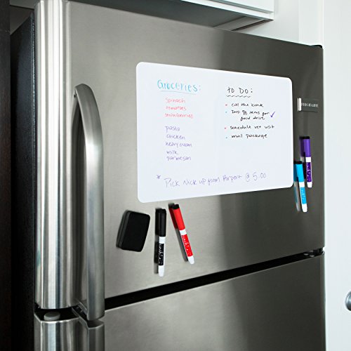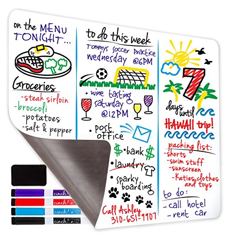 Cinch! Magnetic Dry Erase Whiteboard Sheet For Kitchen Fridge: with Stain Resistant Technology 17x11" - Includes 4 Markers and Big Eraser with Magnets - Refrigerator White Board Organizer and Planner