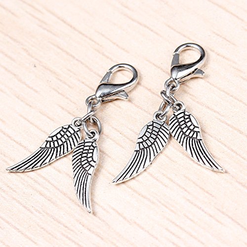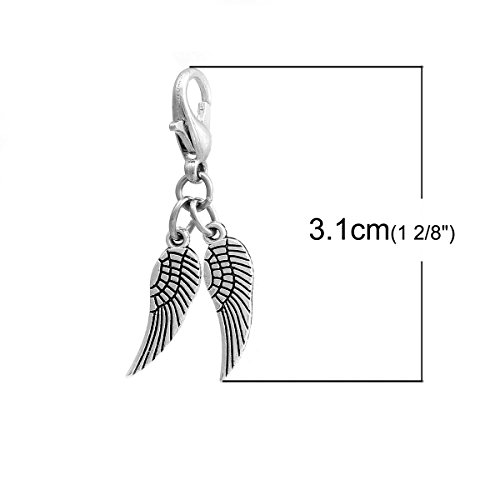 Angel Wings Clip On Charms or Pendants, Silver Tone with Lobster Clasp, 10 Pc, 7 x 31mm
