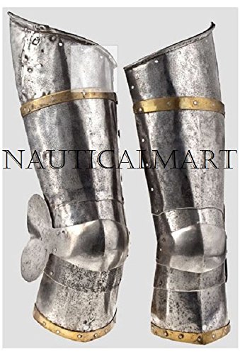 Studio : NAUTICALMART INC Publisher : NAUTICALMART INC Product Description Pair of two, left and right side leg armor! Become the unbreakable warrior clad in steel armor. Medieval knights wore this type of armor into battle for protection of the legs, especially if they were on horseback. The set includes steel greaves that cover both the front and back of the legs, and knee cops for the front of each knee. The steel plates are linked together by heavy duty genuine leather and may take some time to 'wear-in' before they become flexible. A single point adjustable leather strap is integrated to fit around the middle of each greave. This is a very well made set, reasonable enough for Lore based upon historically accurate weaponry, costume, reenactment, and display. Despite having some rough edges here and there, each handmade piece is unique and may have slight differences between any two pieces. MANUFACTURED SOLD BY NAUTICALMART INC. 0