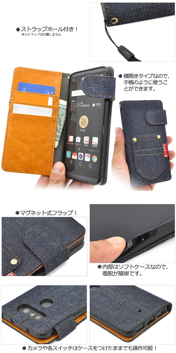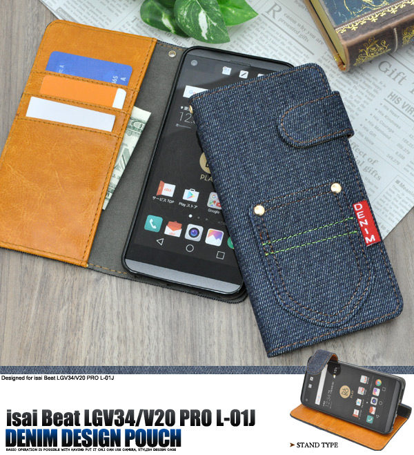 使いやすい手帳型ケース! isai Beat LGV34/V20 PRO L-01J用デニムデザインスタンドケースポーチ | | | |