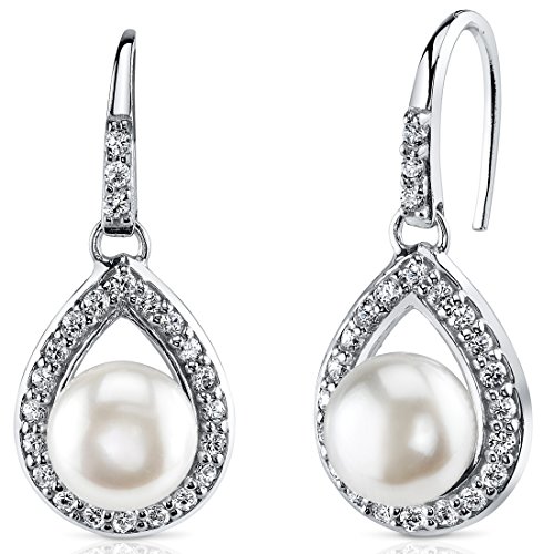 -. Title : Halo Style 8.5mm Freshwater Cultured Pearl Earrings Sterling Silver