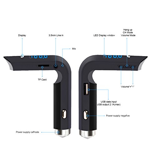 - 1.Wide Compatibility: Wireless in-car Bluetooth FM Transmitter is well compatible with most Bluetooth enabled devices (Such as iPad, iPod, tablet, Smart Phone), It support music playback on TF memory card and U disk containing music in format (MP3 / WMA).