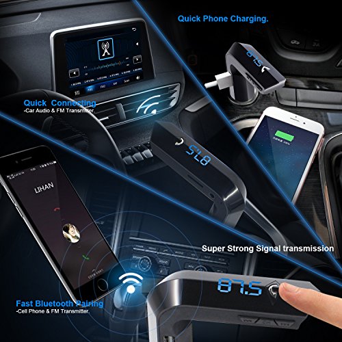 FM Transmitter LUTU Wireless In-Car Bluetooth FM Transmitter Radio Adapter Car Kit with USB Car Charger for iPhone Mobile Phones(Black).