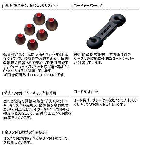 ELECOM Stereo Earphoness Canal Type CB100 Black EHP-CB100ABK