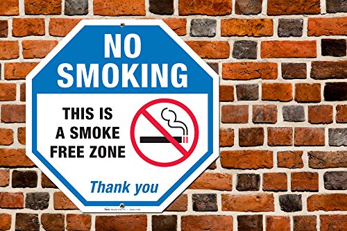 No Smoking Sign, This Is A Smoke Free Zone Large Rust Free 12x12" Aluminum, For Indoor or Outdoor Use - By ARMO