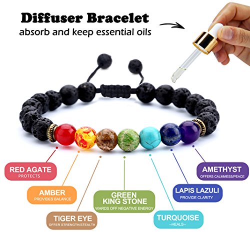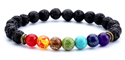 - Stone Material:Amethyst,Lapis Lazuli,Lava Chakra,Red Agate,Amber,Tiger Eye,Green King Stone,Turquoise; Colorful beads correspond to different chakras:Top wheel,Eyebrows,Throat wheel,Heart wheel,Sun wheel,Umbilical round,Seabed round