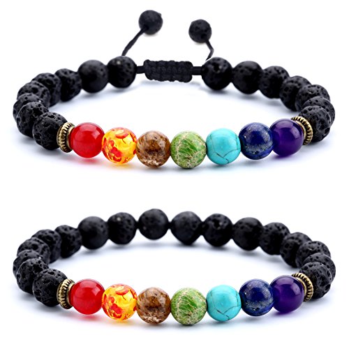 Hamoery Men Women 8mm Lava Rock 7 Chakras Beads Bracelet Braided Rope Natural Stone Yoga Bracelet Bangle
